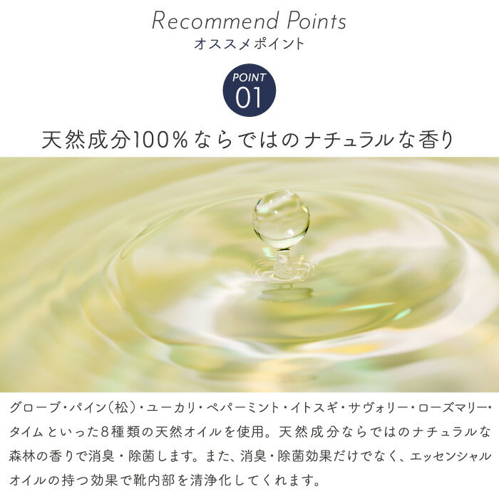 除菌・消臭・防カビ効果に優れたエッセンスを配合したミストをシュッとひと吹きするだけで使えるお手軽さも嬉しいポイントです。