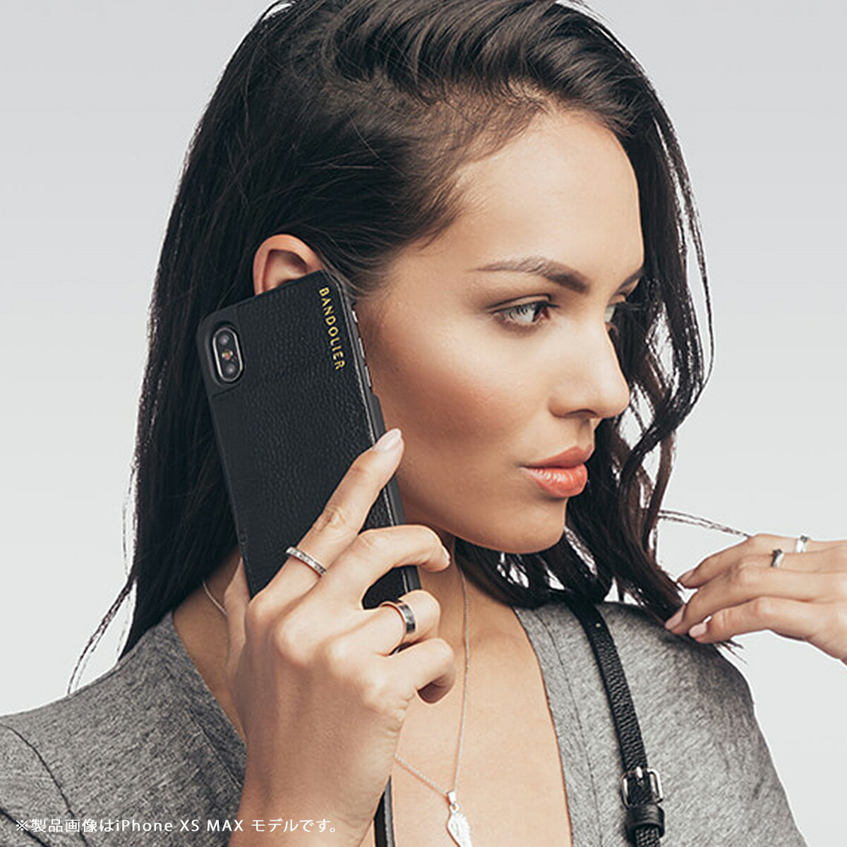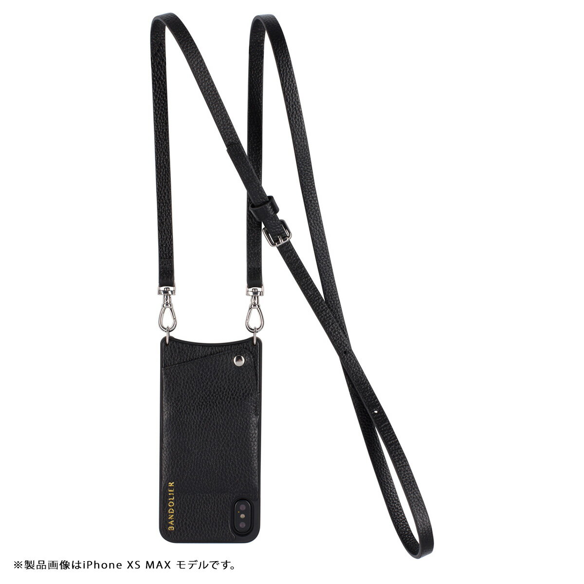 身長や用途に合わせてストラップのサイズ調整が可能です(122cm-137cm) ブランド名 / 商品名 BANDOLIER バンドリヤー / iPhone CASE / EMMA SILVER 10EMM1001 カラー ブラック:BLACK 素材 / 仕様 レザー ワイヤレス充電 : 非対応 着用モデル:172cm ワイヤレス充電:ポケットにカードを2枚入れた状態で充電が可能です。