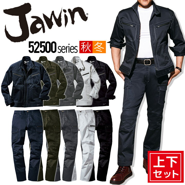 ジャウィン 作業着 上下セット 作業服 ストレッチジャンパー カーゴパンツ【秋冬向け】52500&52502 長袖ジャケット ブルゾン ズボン 作業着 JAWIN 52500シリーズ