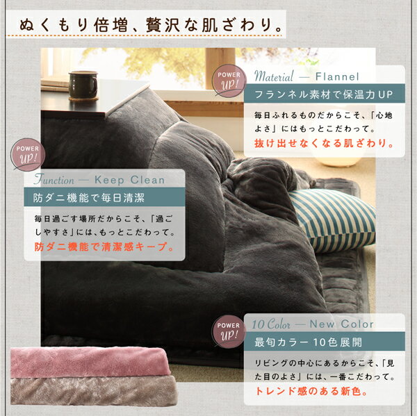 -商品情報- とろけるように贅沢な肌触りの、フランネル素材を使用したこたつ掛け敷き布団セット。